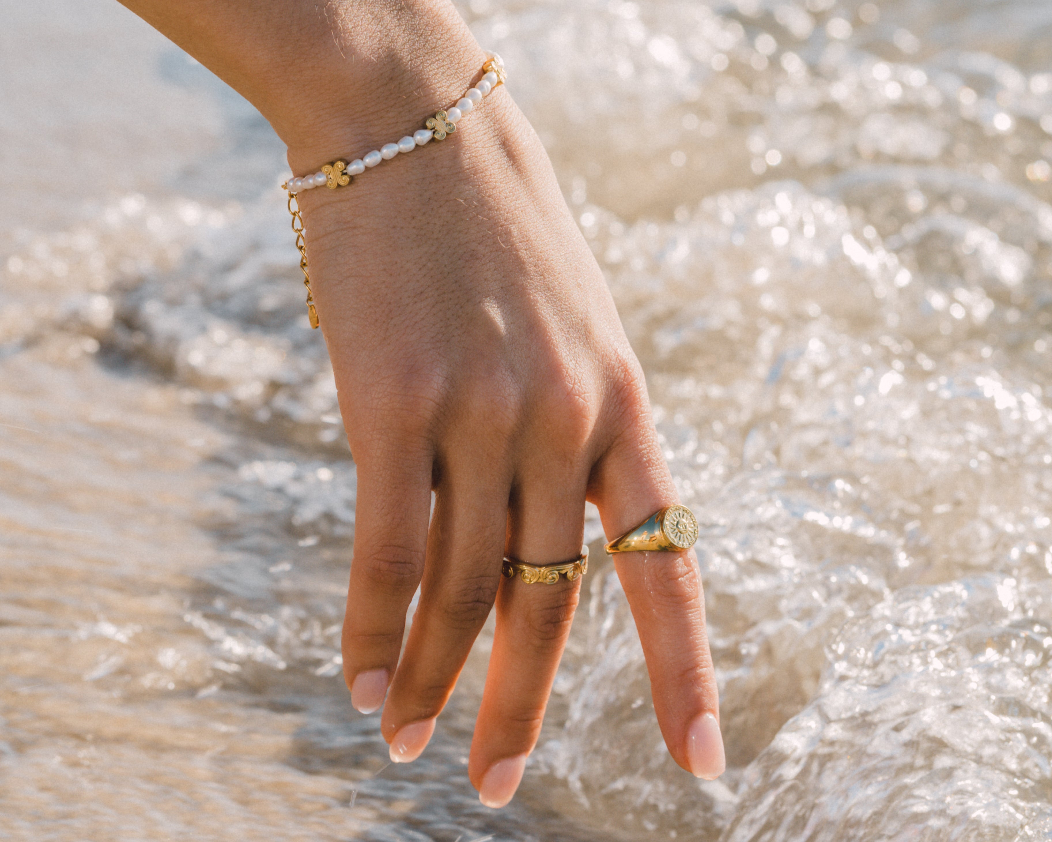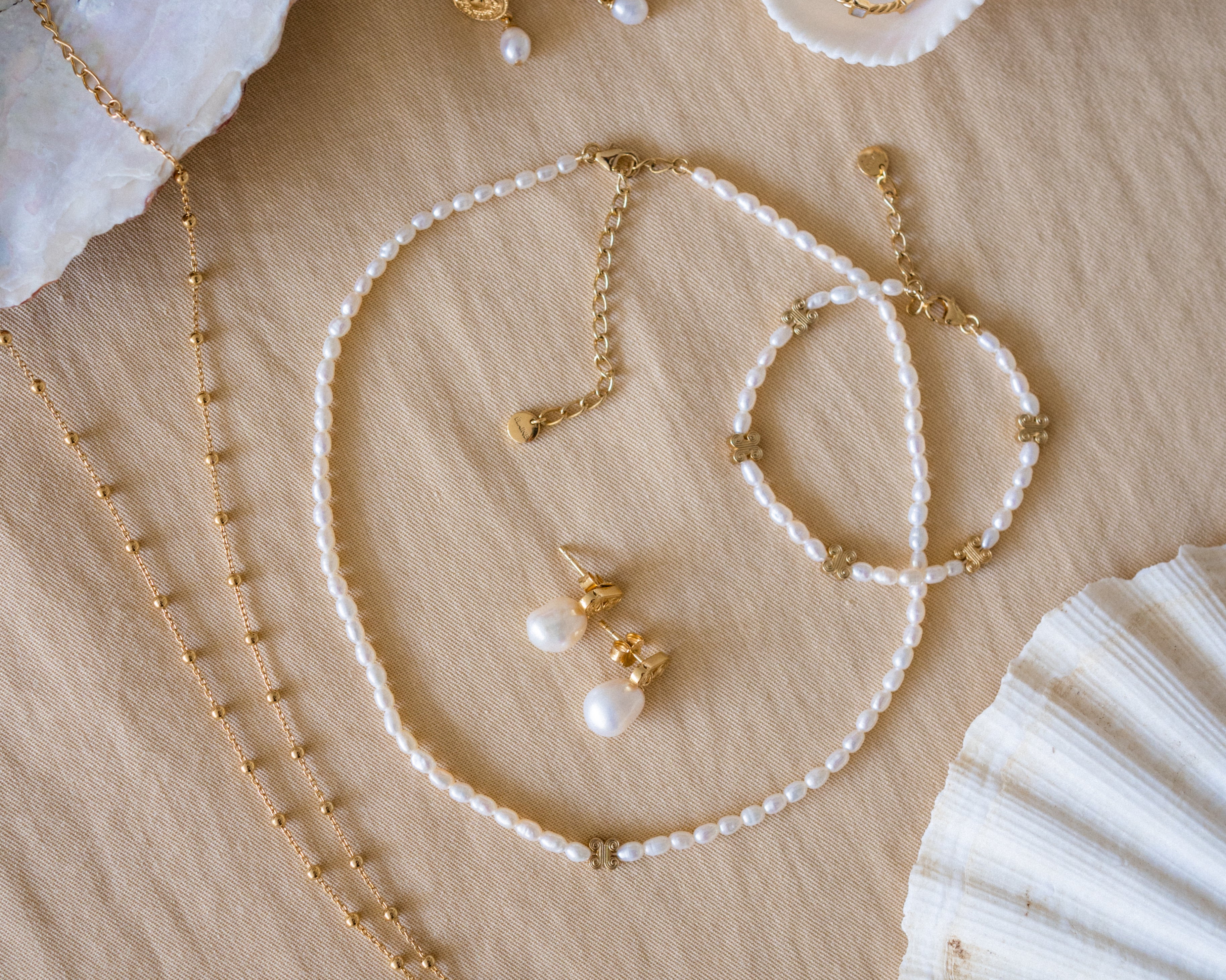 Unsere Kunsthandwerker verwenden ausschließlich feinste Materialien zur Fertigung unserer Schmuckstücke. 18k Gold Vermeil, 925 Sterling Silber, echte Perlen und Perlmutt aus nachhaltiger Herkunft. Mehr dazu
