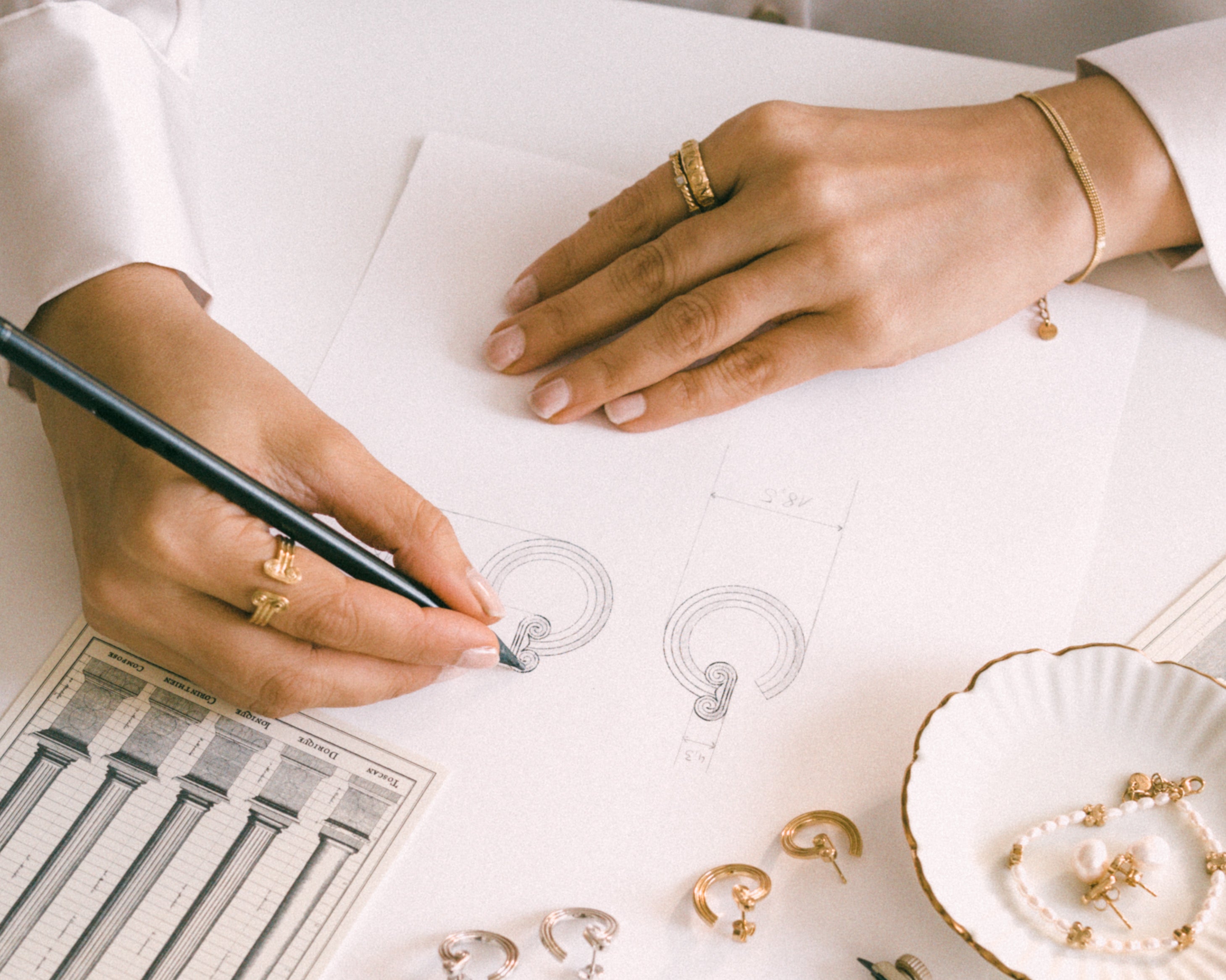 All unsere Schmuckstücke werden von unserer Gründerin selbst mit viel Liebe und Herzblut entworfen.